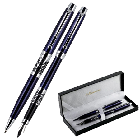 Набор ручек " Manzoni " Venezia шариковая+перьевая, синий корпус, футляр кожзам