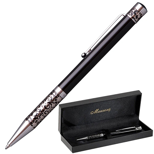 Ручка шариковая " Manzoni " Imperia синяя 1мм, поворотный механизм, металлический черный корпус, толщина письма- 0,50мм, футляр кожзам