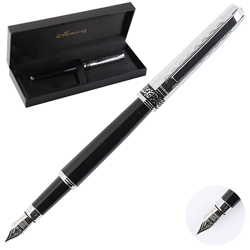Ручка перьевая " Manzoni " Trento черный корпус, футляр кожзам
