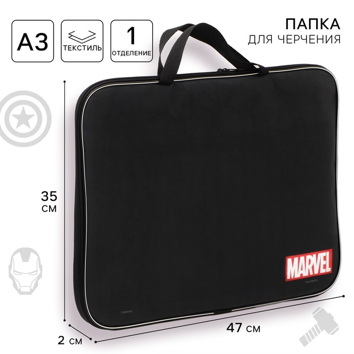 Папка для черчения и рисунков А3, 470х350х20 мм с ручками, текстильная,Мстители