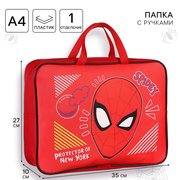 Папка пластиковая с ручками А4, на молнии, 80х330х240 мм, Человек-паук