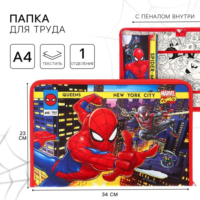 Папка для труда А4 с пеналом, на молнии, текстиль, Человек-паук