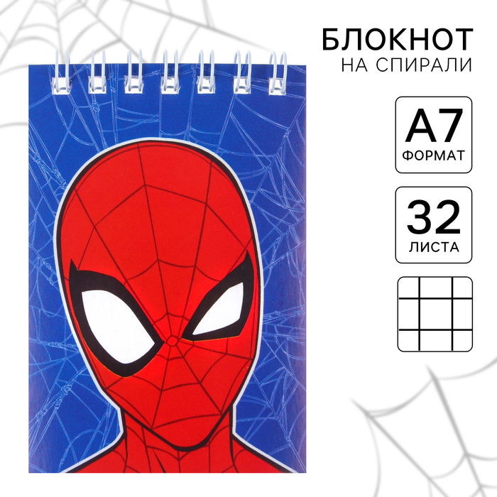 Блокнот А7, на скрепке, 16 листов, Человек-паук