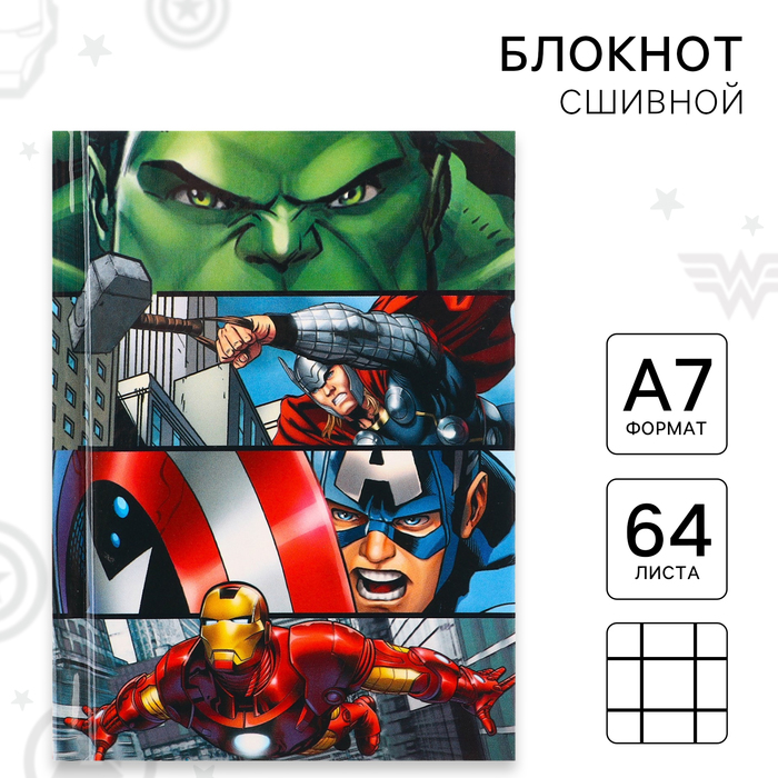 Блокнот А7, 64 листа, в твёрдой обложке, Мстители