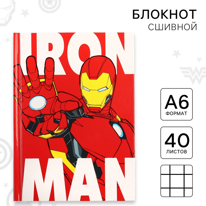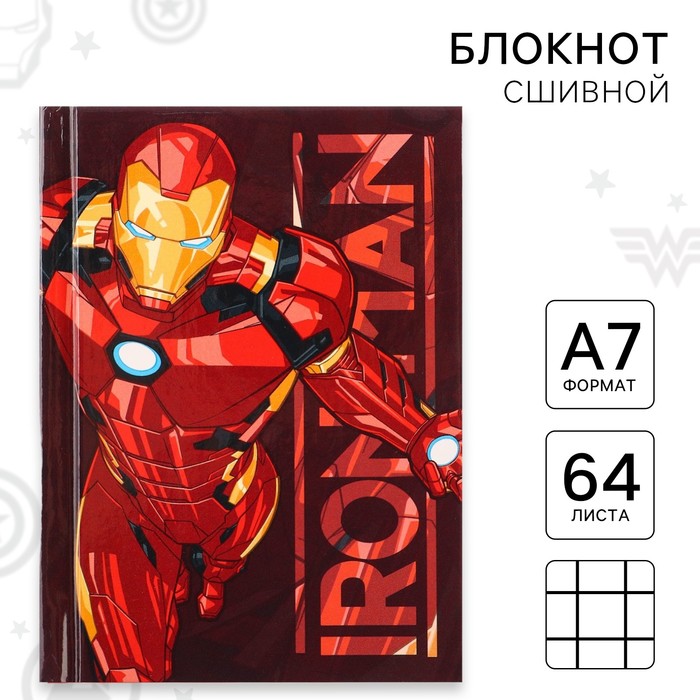 Блокнот А7 "IRON MAN", 64 листа, в твёрдой обложке, Мстители