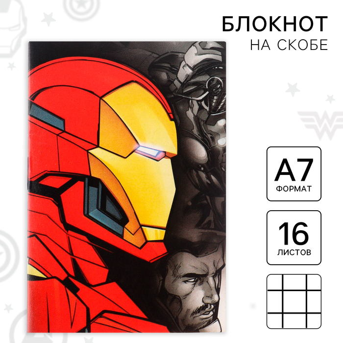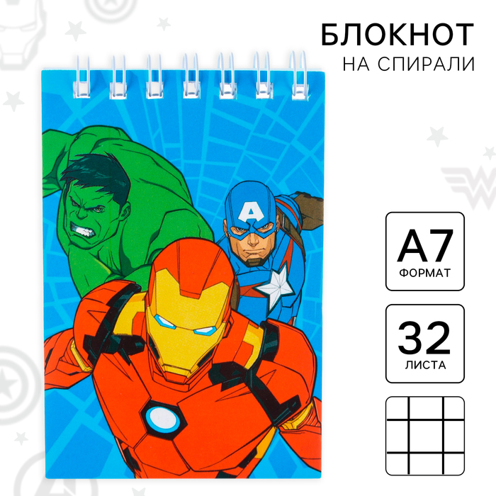 Блокнот А7, на скрепке, 16 листов, в клетку, Мстители