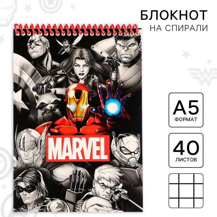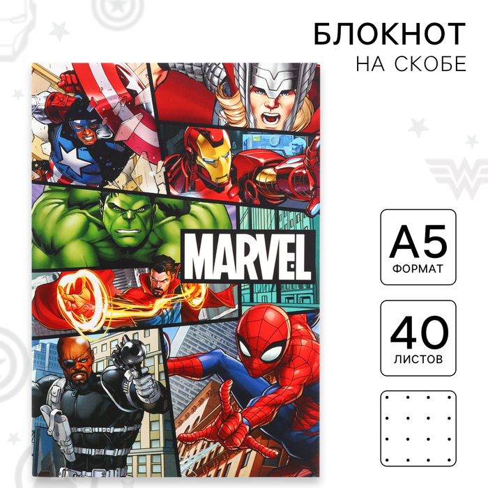 Блокнот А5, на скрепке, 40 листов, в точку, Мстители