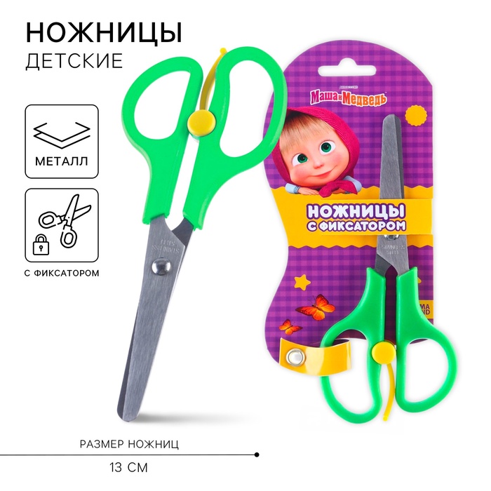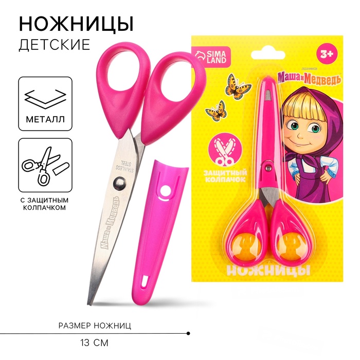 Ножницы детские 13 см, с защитным колпачком, Маша и Медведь