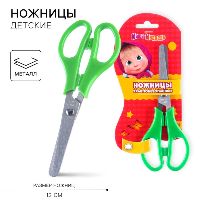 Ножницы детские 12 см, безопасные, пластиковые ручки, МИКС, Маша и Медведь