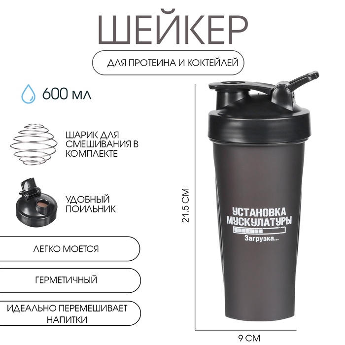 Шейкер спортивный для коктейлей, спортивного питания, 600 мл, CrossFit Max, 21.5 х 9 см