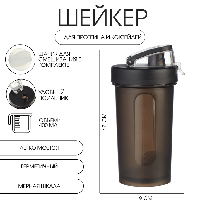 Шейкер спортивный для коктейлей и воды, 400 мл "Мастер К", 17 х 9 см