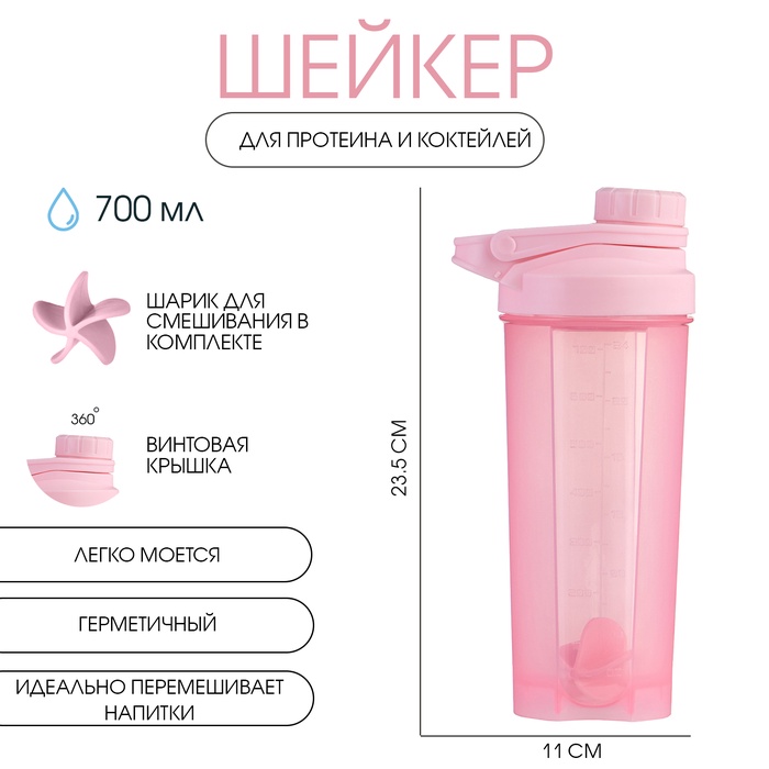 Шейкер спортивный для коктейлей и воды, 700 мл "Мастер К", 23.5 х 11 см, микс