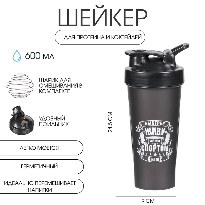 Шейкер спортивный для коктейлей, спортивного питания, 500 мл, Best, 19.5 х 10 см