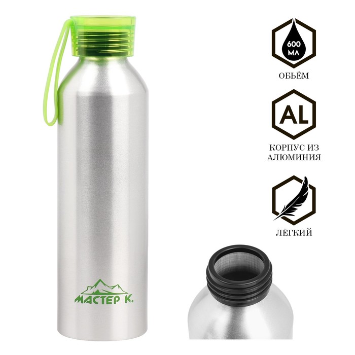 Бутылка для воды, 600 мл, "Мастер К", 6.6 х 23 см, корпус из алюминия