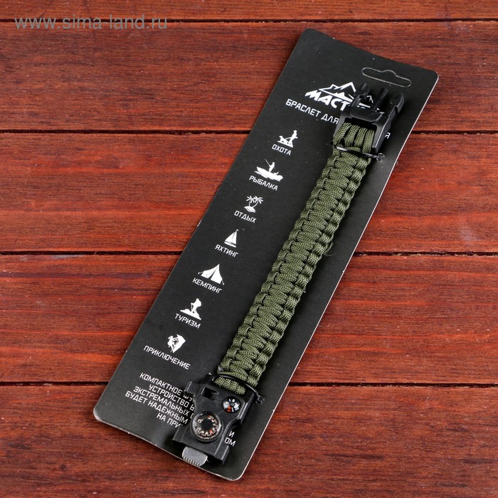 Браслет для выживания "Мастер К.", с компасом и фонариком, паракорд 3 м, 24 х 2 см