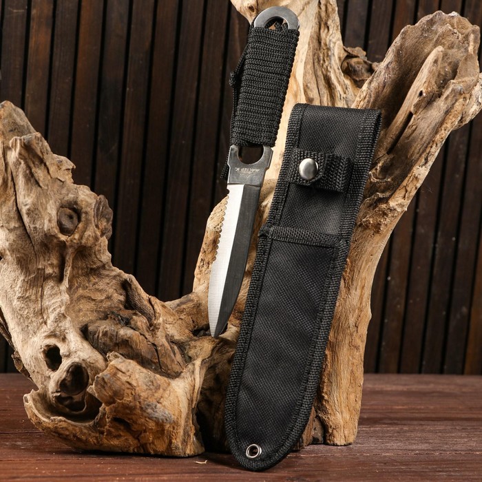 Нож тактический "Альфа" 23см, клинок 110мм/3мм, со стеклобоем, черный