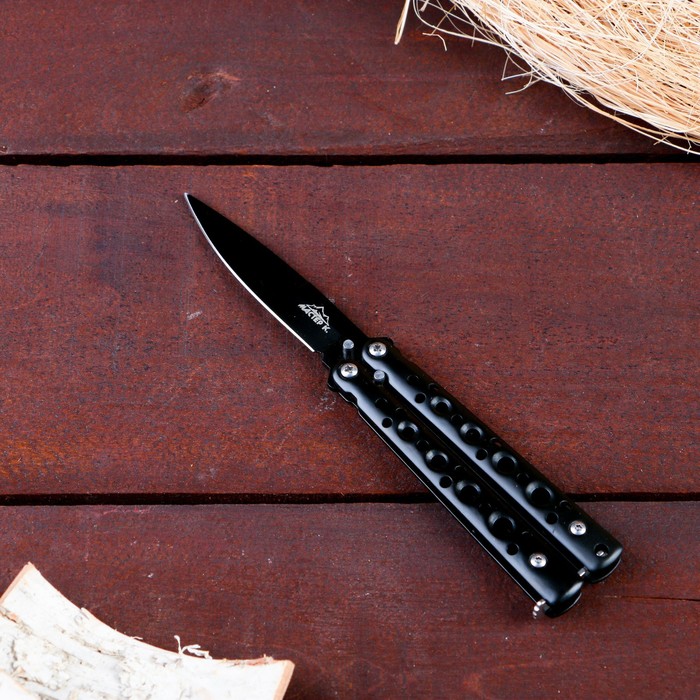 Нож-бабочка "Серебро" 15,7см, клинок 69мм/1мм, черный