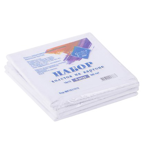 Набор холстов " Мастер-Класс " 10*10см 5шт на картоне, хлопок, среднезернистый, грунтованный акриловым грунтом