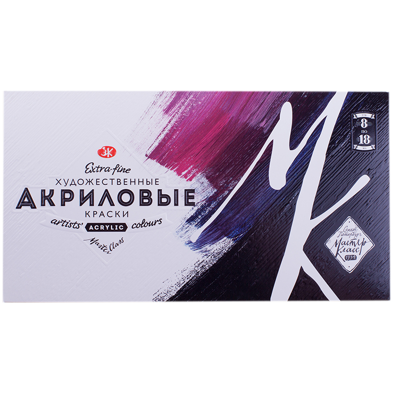 Краски акриловые Мастер-Класс, 08цв., 18мл/туба, картон