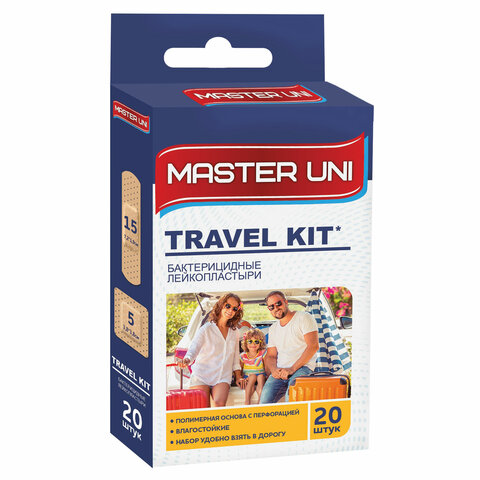 Набор пластырей 20 шт. MASTER UNI TRAVEL KIT, дорожный набор, на полимерной основе, с европодвесом, 0108-002