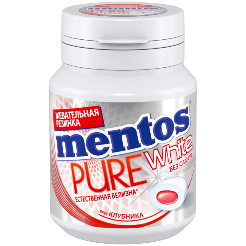 Жевательная резинка Mentos "PureWhite. Клубника", 54г, баночка