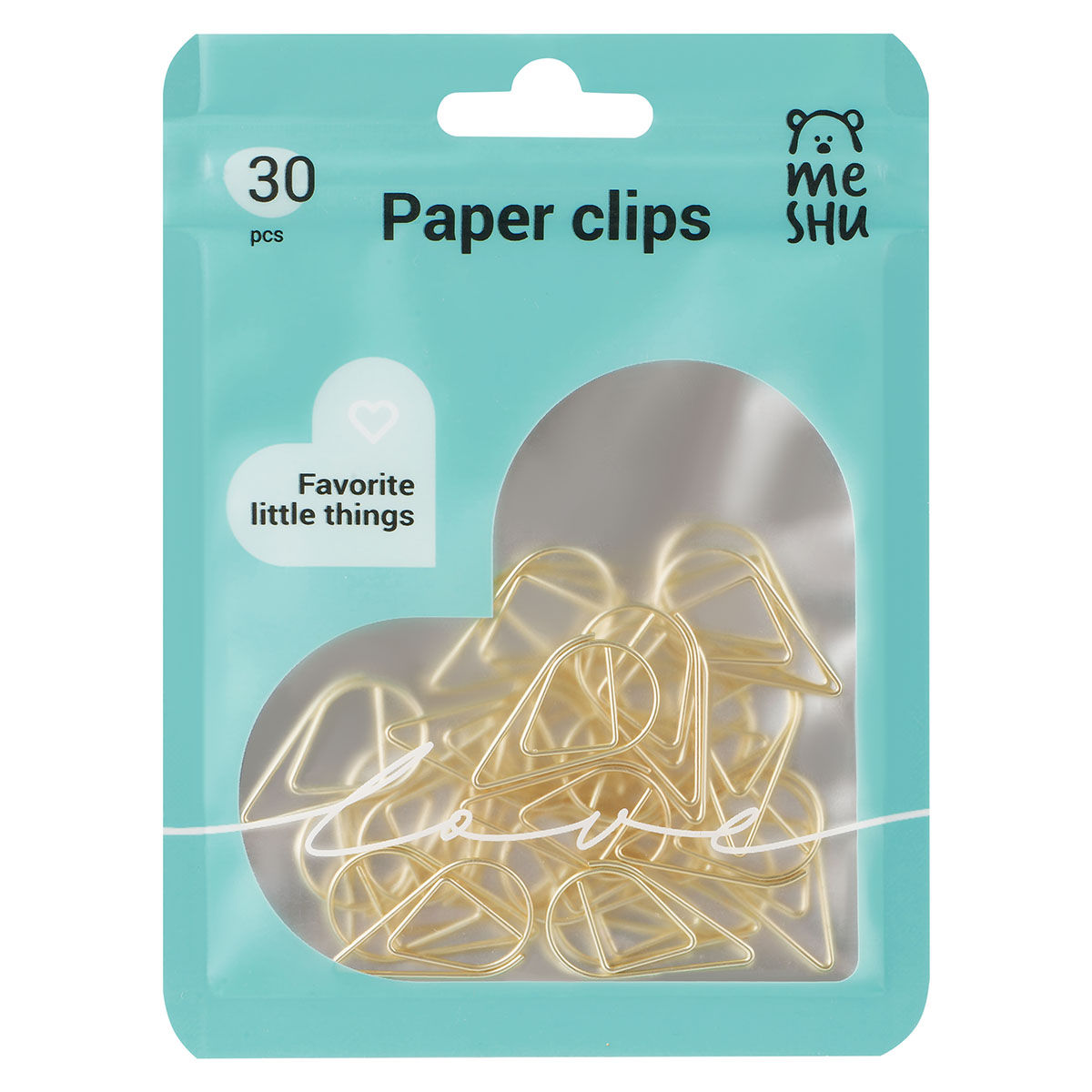 Скрепки фигурные 25мм, MESHU "Little Drops", 30шт., пакет с замком зип лок, европодвес
