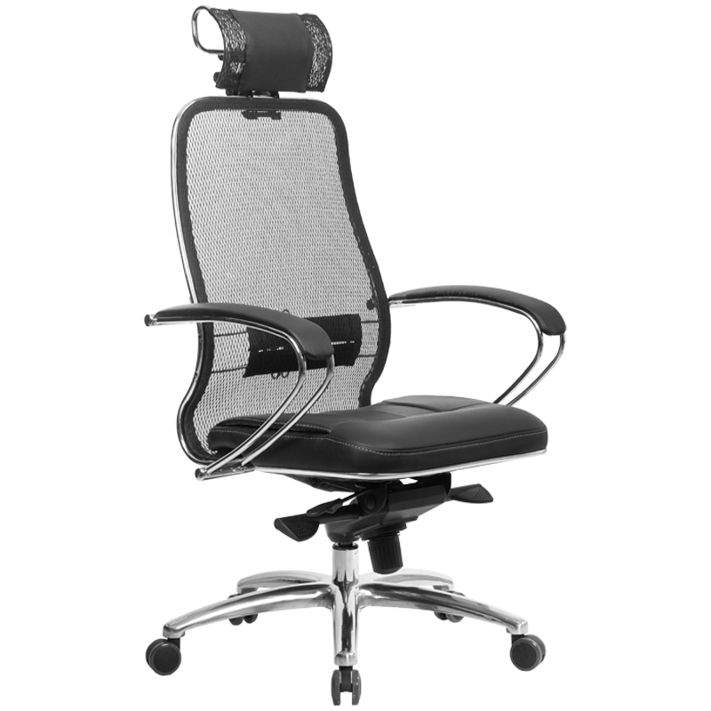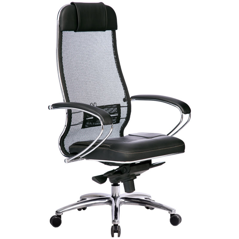 Кресло руководителя Метта "Samurai" SL-1.03/SL-1.04, сетка/кожа черная, механизм качания