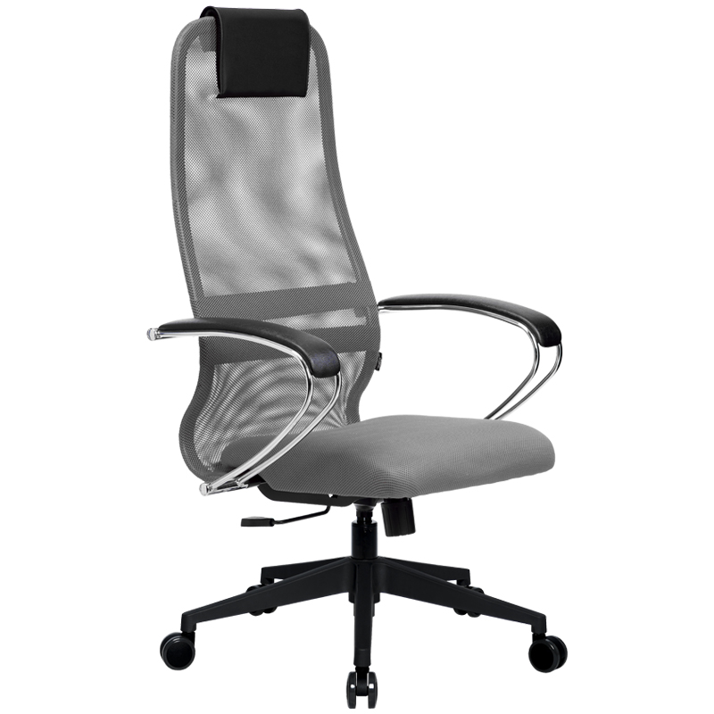 Кресло руководителя Метта "S-B" S-BK-8 PL2, ткань-сетка светло-серая №24, спинка-сетка, топ-ган