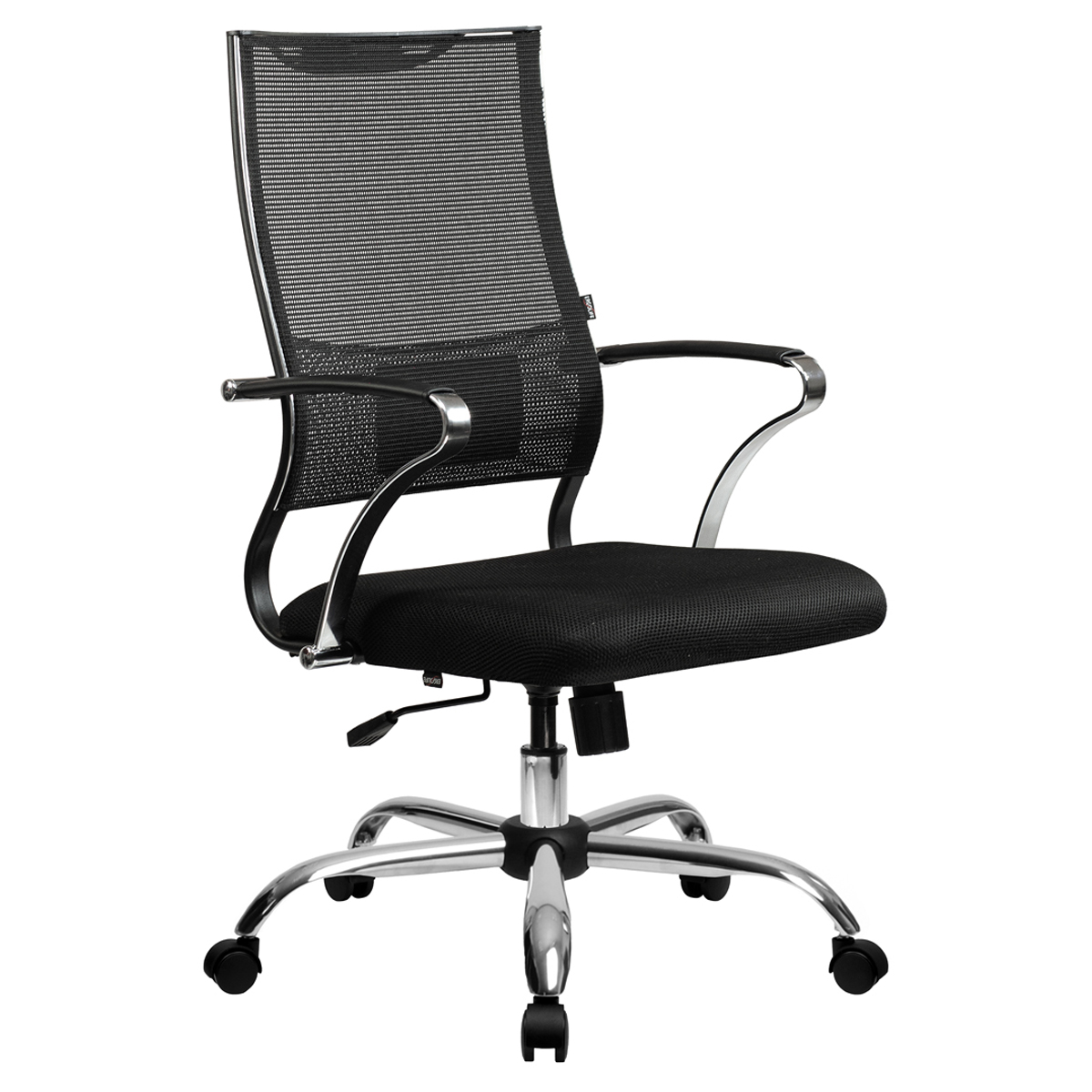 Кресло руководителя Метта "S-B" S-BK-10 CH, ткань-сетка черная №20, топ-ган