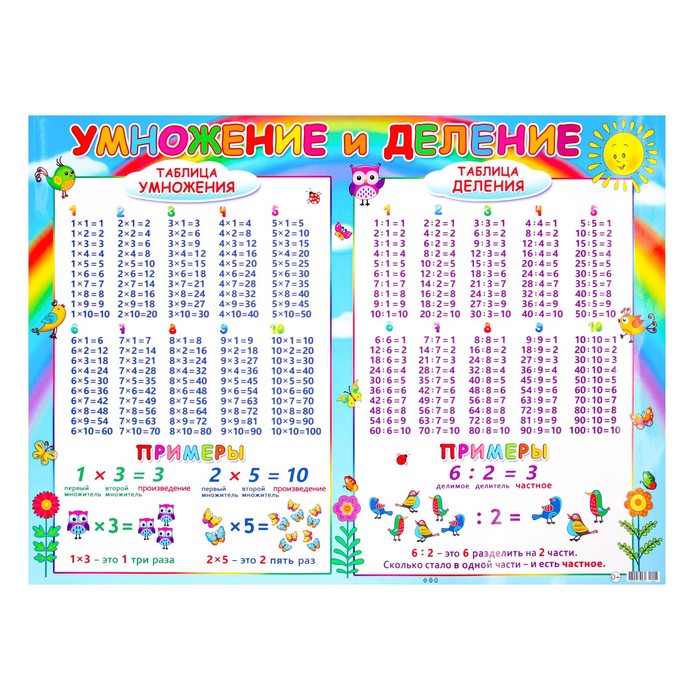 Плакат "Умножение и деление" радуга, 44,5х60 см