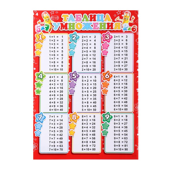 Плакат "Таблица умножения" звезды, красный фон, 21,6х30,3 см