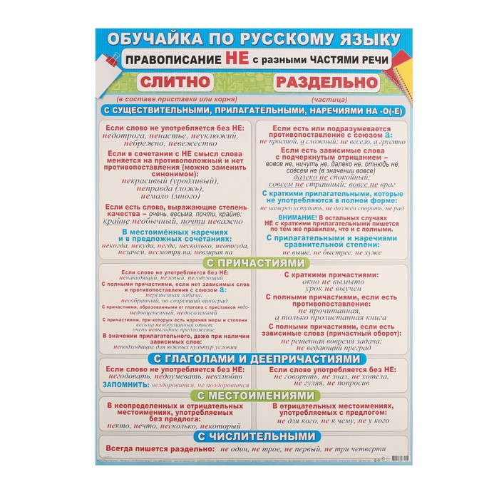 Обучайка по русскому языку "Правописание НЕ" 50,5х69,7 см