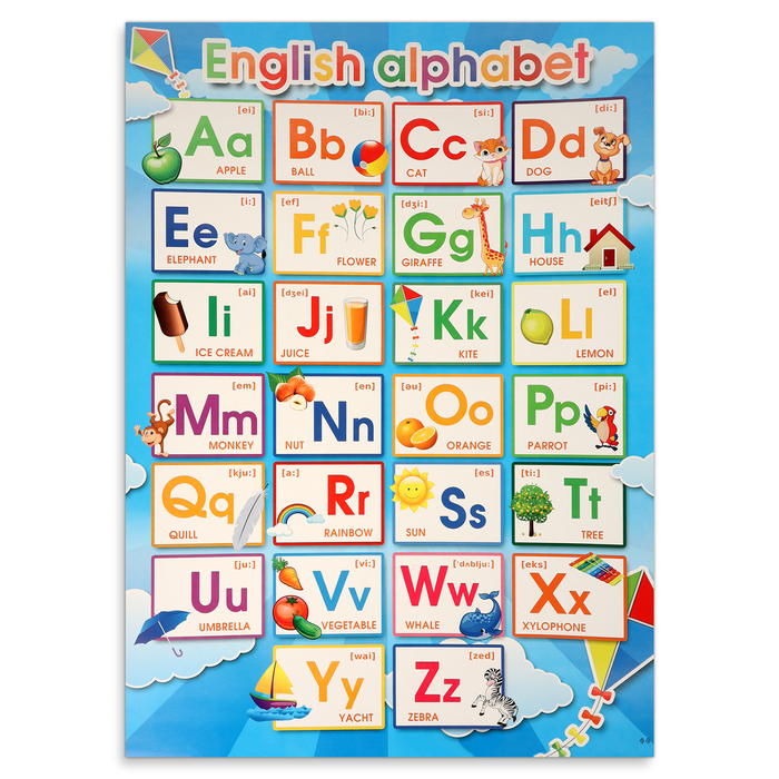 Плакат "Алфавит английский" воздушный змей, 50,5х70 см