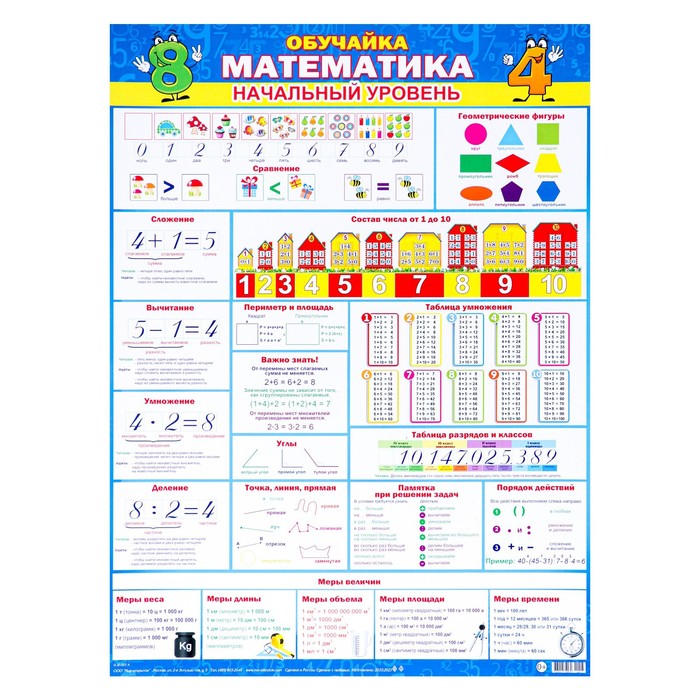Плакат "Обучайка. Математика. Начальный уровень" 44,6х60,2 см