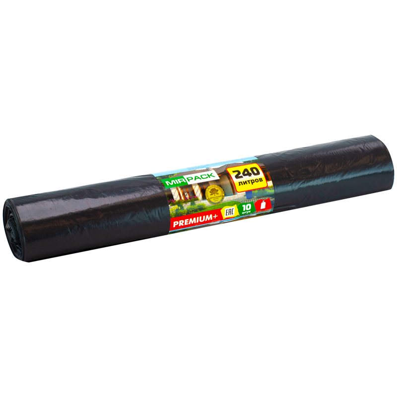 Мешки для мусора 240л Mirpack "Premium+" ПВД, 93*130см, 45мкм, 10шт., черные, в рулоне