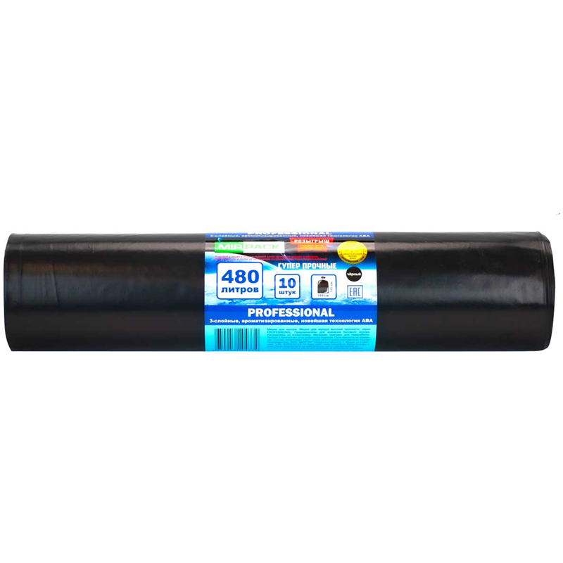 Мешки для мусора 480л Mirpack "Professional" ПВД, 130*170см, 70мкм, 10шт., черные, в рулоне