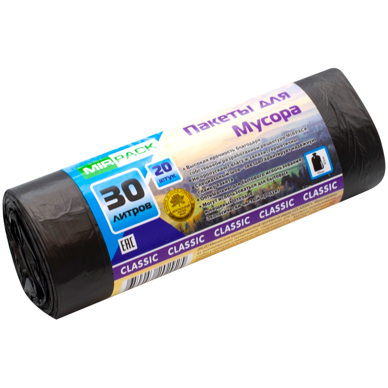 Мешки для мусора 30л Mirpack "Classic" ПНД, 50*60см, 6мкм, 20шт., черные, в рулоне