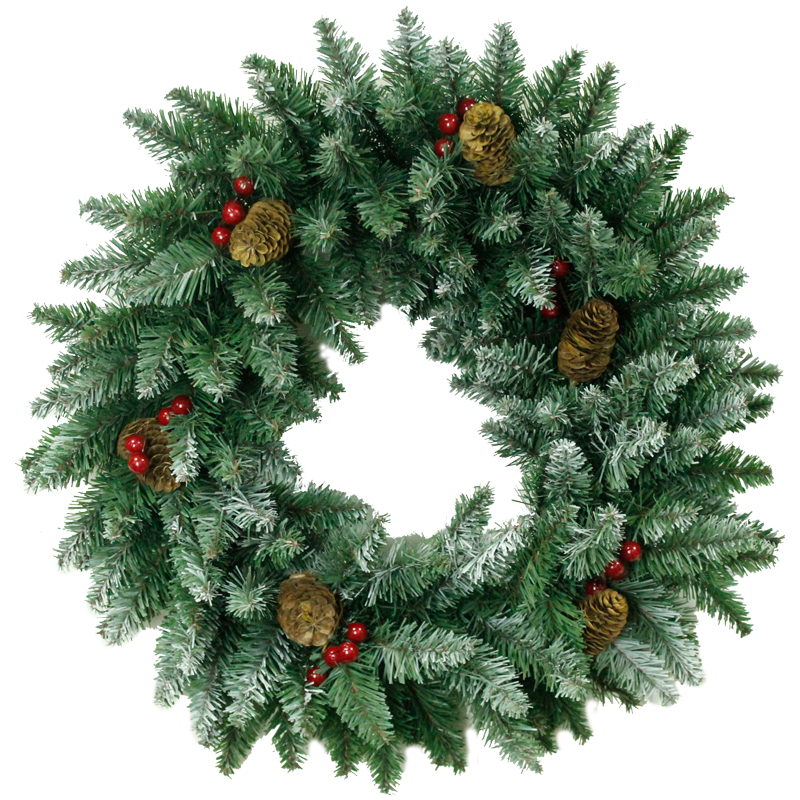 Венок "Новогодний 15" зеленый с шишками и ягодами заснеженный, диаметр 60см