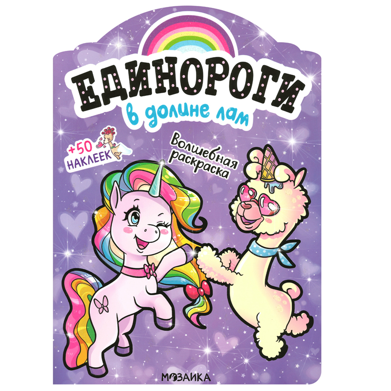 Раскраска А4 Мозаика kids "Единороги с наклейками. В долине лам", 16стр., 50 наклеек