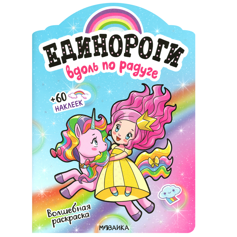Раскраска А4, Мозаика kids "Единороги с наклейками. Вдоль по радуге", 16стр., 60 наклеек