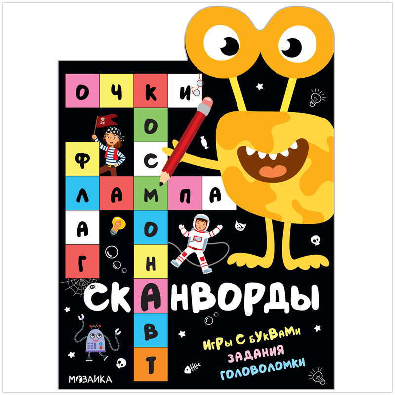 Книжка-задание, А4, Мозаика kids "Сканворды. Приключения", 16стр., фигурная высечка