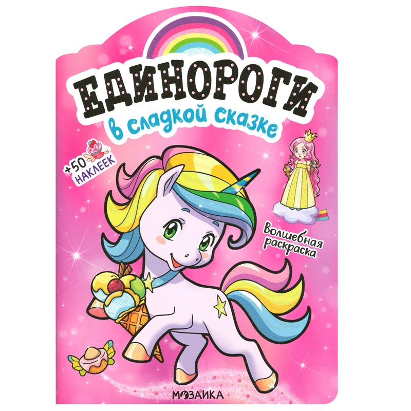 Раскраска А4 Мозаика kids "Единороги с наклейками. В сладкой сказке", 16стр., 50 наклеек