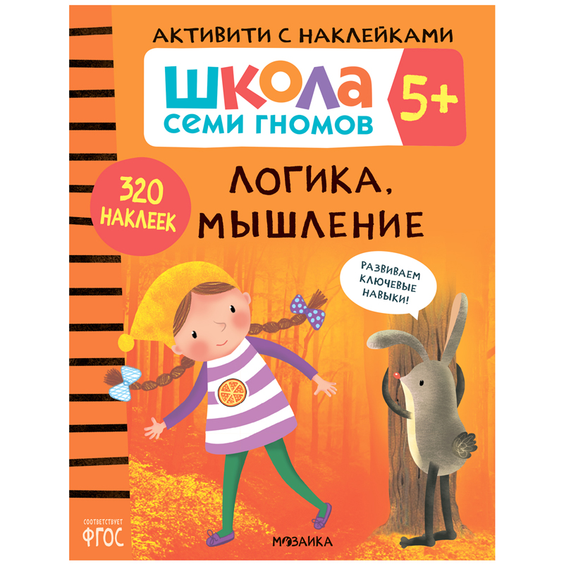 Книжка-задание, А4, Мозаика kids "Школа Cеми Гномов. Активити с наклейками. Логика, мышление 5+", 40стр.