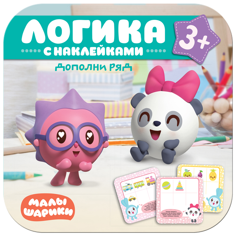 Книжка-задание, 200*200мм., Мозаика-Синтез "Малышарики. Логика с наклейками. Дополни ряд", 16стр.