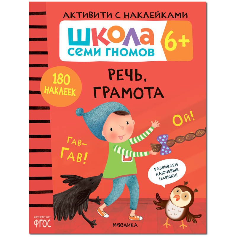 Книжка-задание, А4, Мозаика kids "Школа Cеми Гномов. Активити с наклейками. Речь, грамота 6+"