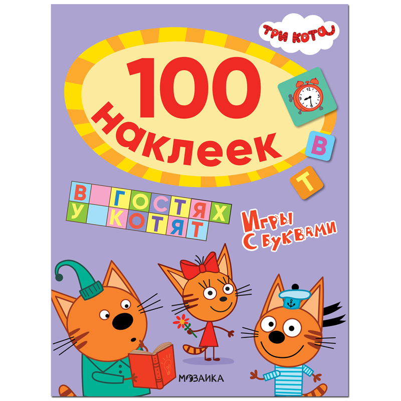 Книжка-задание Мозаика kids "Три кота. 100 наклеек. Игры с буквами. В гостях у котят", 12стр.