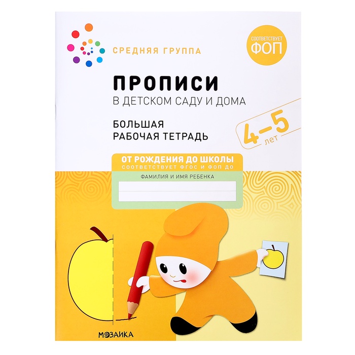 Рабочая тетрадь «Прописи для малышей», средняя группа, Денисова Д., Дорожин Ю.