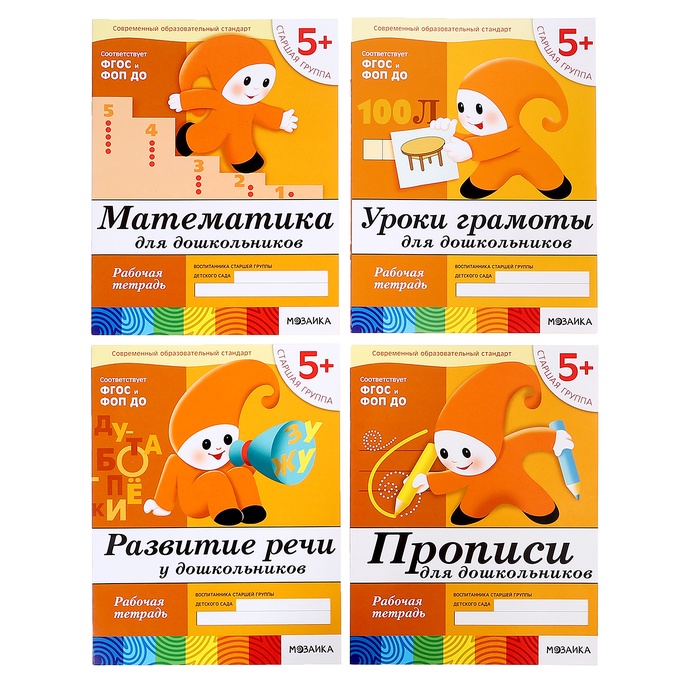 Набор рабочих тетрадей «Математика, прописи, развитие речи, уроки грамоты», старшая группа, 5+
