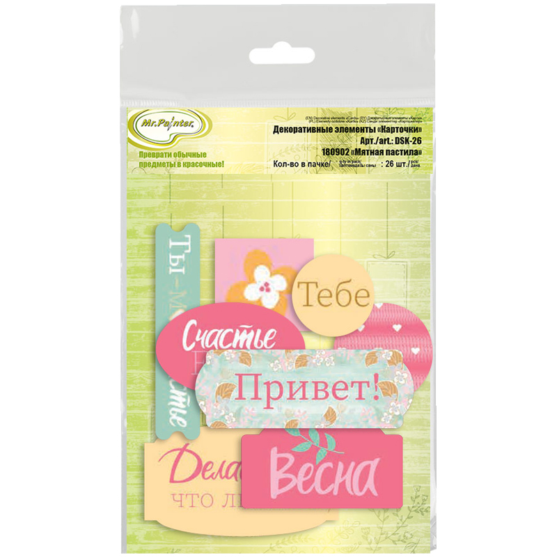 Декоративные элементы Mr. Painter "Карточки. Мятная пастила" 26 эл., фигурные, 190г/м2, набор 5шт.