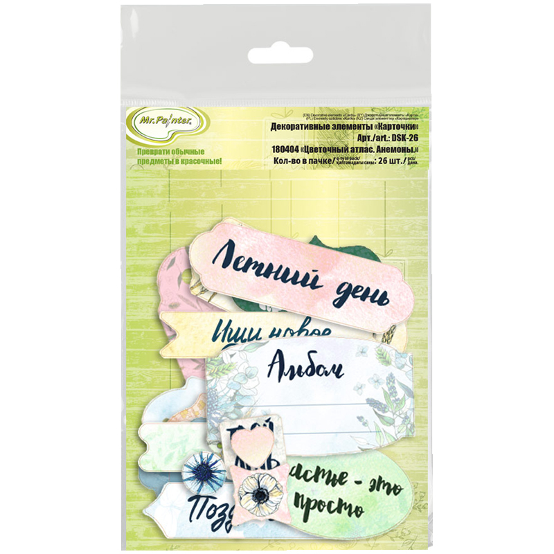 Декоративные элементы Mr.Painter "Карточки.Цветочный атлас.Анемоны" 26эл фигурные,190г/м2 ,набор 5шт